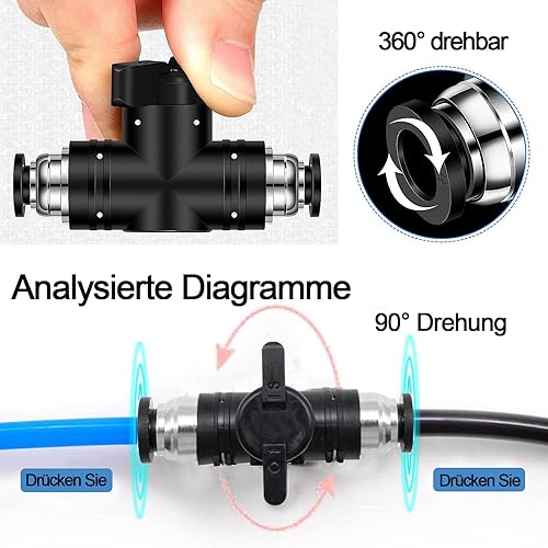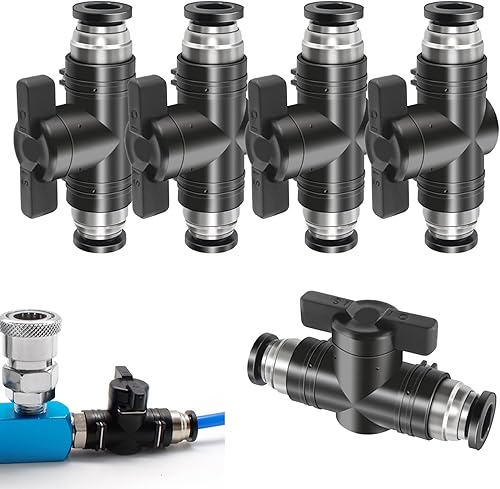 Pneumatik Steckverbinder, 5 Stück Pneumatischer Kugelhahn 6mm, Steuerventilfittings, Push to Connect Steuerventilfittings, für Pneumatikschlauch, Gas Schnellkupplung