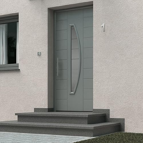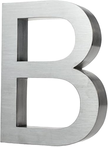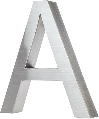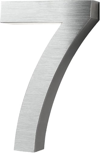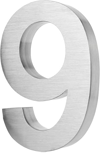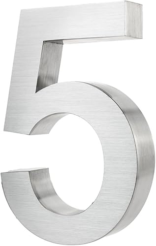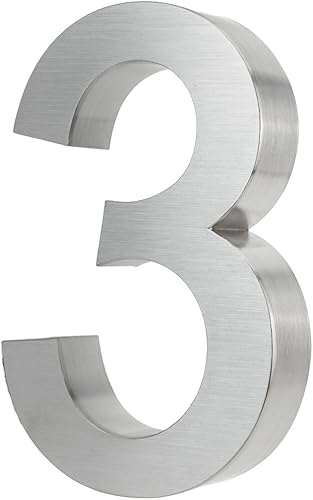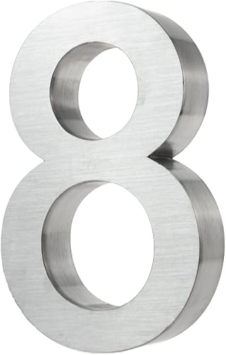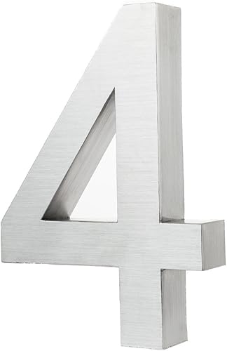 KOBERT GOODS Hochwertig Modern Gebürstet Edelstahl V2A Hausnummer 4 klassisch 3D-Effekt Design Wetterfest und Rostfrei inklusive Montage-Material Höhe 20cm Tiefe 3cm Groß für Haus und Gartenzaun