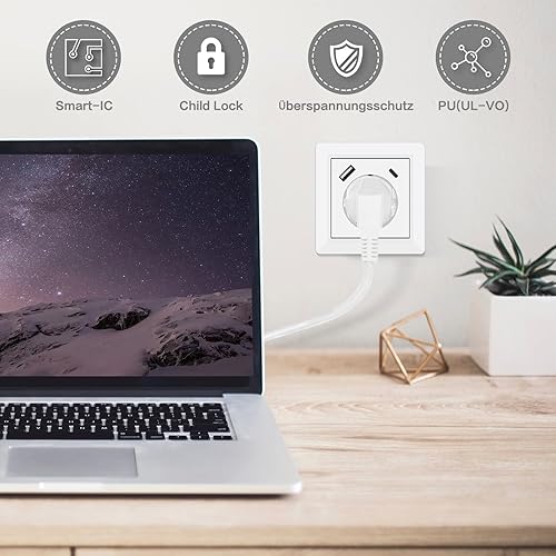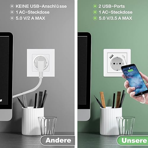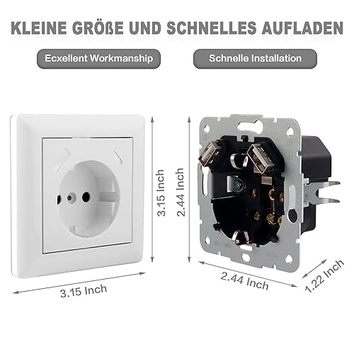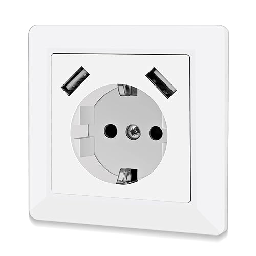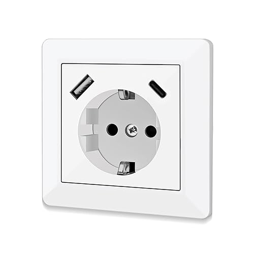 Steckdose mit USB Anschluss und Typ C (max. 5 V 3,4 A) Schuko Steckdose mit USB Anschluss Glänzend Schuko Unterputz Steckdose System 55 Reinweiß Wandsteckdose Schutzkontaktsteckdose
