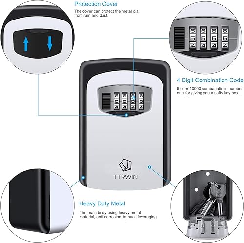 TTRWIN Schlüsselbox Schlüsselsafe Schlüsseltresor, mit 4-stelligem Hochcodeschloss Große Schlüsselbox, Zinklegierung wasserdicht und rostfrei, Wandschlüsselbox für den Innen- und Außenbereich