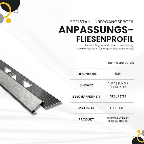 Anpassungsprofil Edelstahl Übergang Fliesenleiste Profil Schiene V2A L250cm H12mm gebürstet