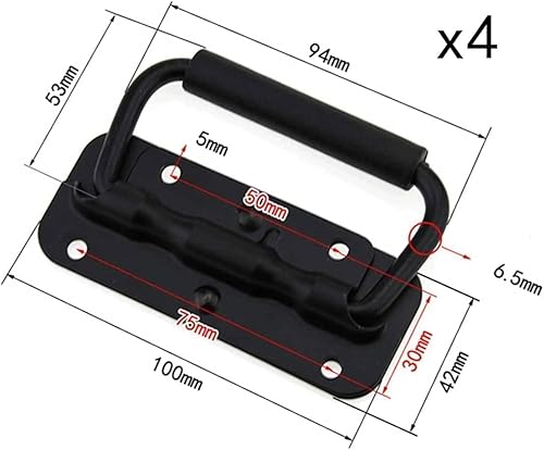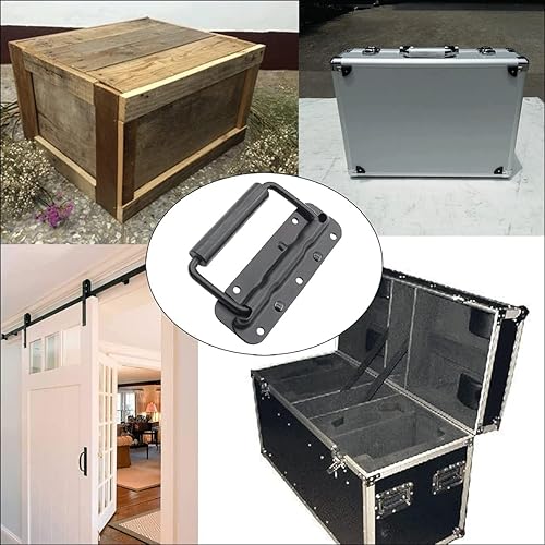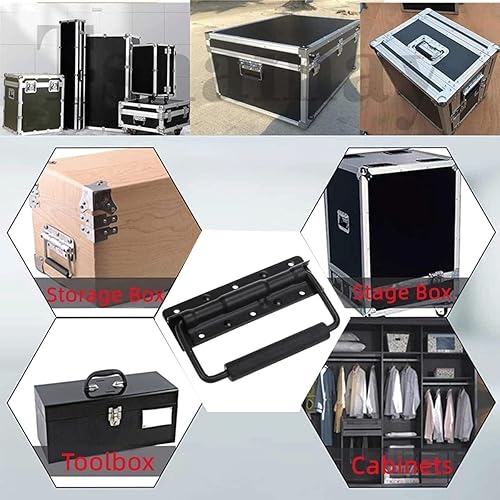 ZHYUAN 4 Stück Klappgriff Aus Edelstahl,Klappbare Griffbox Mit 16 Schrauben,Schwarz Klappgriff,Edelstahl Griff Tragegriff,Tragegriff,klappgriff Edelstahl,für Toolbox Aufbewahrungsbox Werkzeug Boxen
