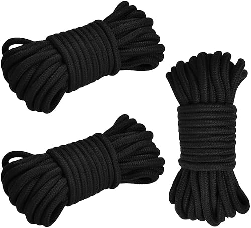 TIMESETL 3er Baumwollseil Ø 8mm Baumwollkordel, 10meter Weiches Baumwollknoten-Bindeseil Twisted Mooring Rope aus Baumwolle, 3er - 10m auf Rolle Schwarz