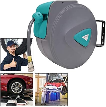 UISEBRT 20m Druckluftschlauch Aufroller Schlauchtrommeln Druckluft Automatik Schlauchaufroller mit Schnellkupplung Wandschlauchhalter Grau