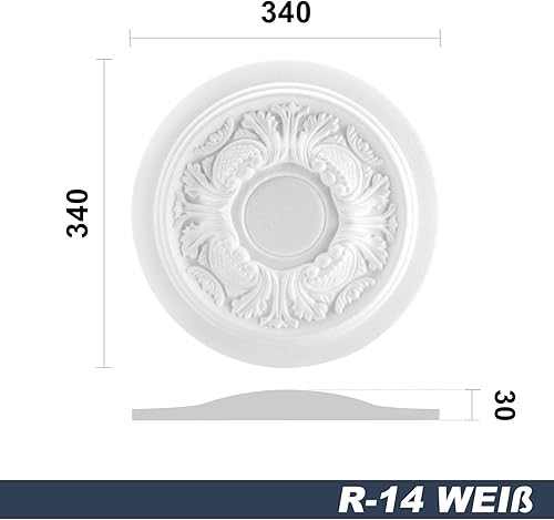 MARBET DESIGN Stuckrosette R-14, Ø 34cm - Deckenrosette weiß, aus EPS Styropor, Zierelement, Stuck, Wanddeko Wohnzimmer Lampe Polystyrol rund