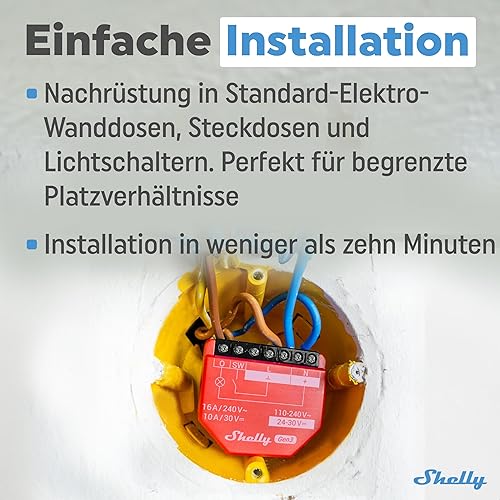 Shelly 1PM Gen3 | WLAN Relais-Schalter mit Strommessung - 16A | Lichtsteuerung | Alexa Google Home, Matter Kompatibel | iOS- Android-App | Kein Hub erforderlich