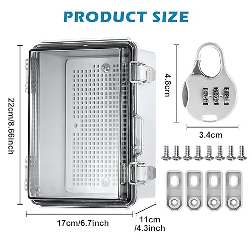 Anschlussdose Wasserdicht IP66, Aufputz Verteilerkasten Mit Wandmontagezubehör Und Schloss, Transparent Verteilerdose Schaltschrank Außen, ABS Kabelanschlussdose Verteilerkasten(220 * 170 * 110mm)