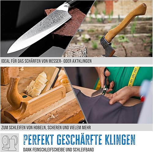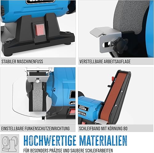 Güde Kombischleifer GKS 150-25 (250 W, 2980 1/min, Kondensatormotor, stabiler Maschinenfuß, Funkenschutzeinrichtung einstellbar, Feinschleifscheibe ø 150 mm 36 K, Schleifband 50x686 mm 80 K)