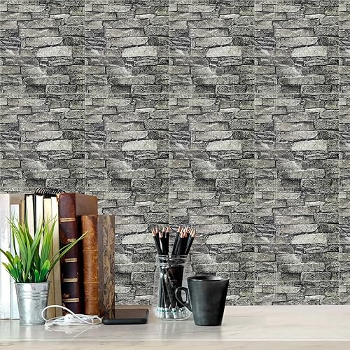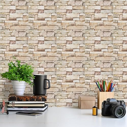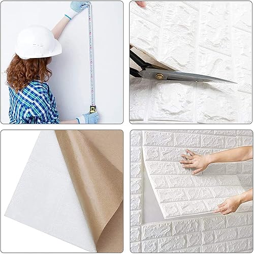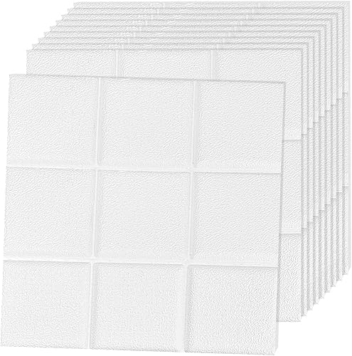 LeapBeast 3D Tapete Wandpaneele Selbstklebend Ziegel,3D Ziegel Tapete,Steinoptik Tapete Wasserdicht Wandaufkleber,10 Stücke 38 * 35CM,DIY Wandtapete,Geeignet für Schlafzimmer,Wohnzimmer (Weiß, 35x38)