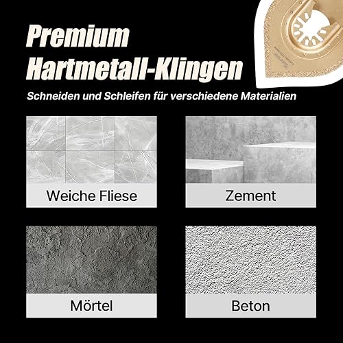 Vearter 4 Tlg Multitool Werkzeug Sägeblätter, Hartmetall Oszillationswerkzeug Multifunktionswerkzeug Zubehör für Fliesen Fugenmörtel Beton Mauerwerk