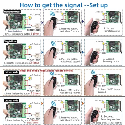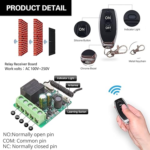 DieseRC Funk Fernbedienung Schalter 220V 230V 1 Kanal Funksteuerung Relais Empfänger mit 2 Sender Schlüsselanhänger Potentialfreie Kontakte Relais Controller