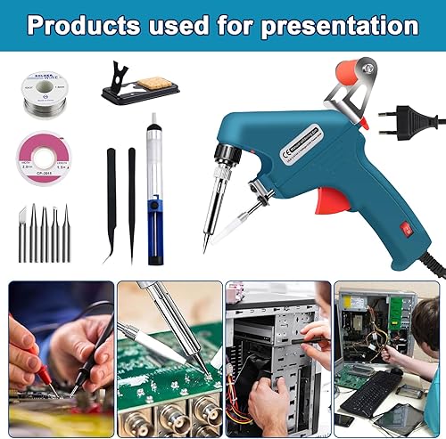 Roadtime 60W Elektronik Lötpistole Kit, Automatische Soldering Gun Lötkolben Set,mit 5 Lötspitzen,Tweezers,Lötdrähte, Halterung und Kreuzschlitzschr,Handheld Schweißpistole Zinnpistole Löt