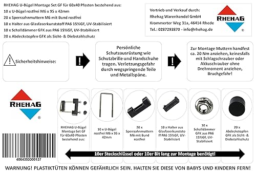 RHEHAG 10er U-Bügel Montage Set GF 60x40 Pfosten Doppelstabmatte 10 Stück