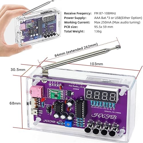 FM-Radio-Set, Löt-Übungs-Kits, elektronisches Projekt-Set, FM 87–108 MHz mit 2 Leistungsmodi EK1989, Löten Lernen und Unterrichten für Anfänger, Erwachsene, Kinder