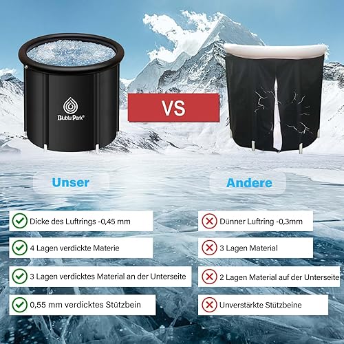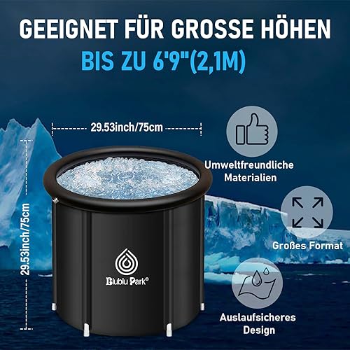 Eisbad Tonne für Athleten,75x75cm tragbares Ice Bath Tub für Sportler mit Deckel, Aufblasbare Faltbare Tauchwanne im Freien für Kaltwassertherapie-Training Erholungs-Eisfass-Tauchbecken für Erwachsene