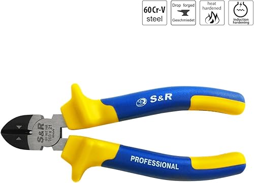 S&R Seitenschneider 180 x 24 mm, gehärtete Cr-V Schneidbacken, phosphatiert, handschonende Griff-Form mit Mehrkomponenten-Hüllen