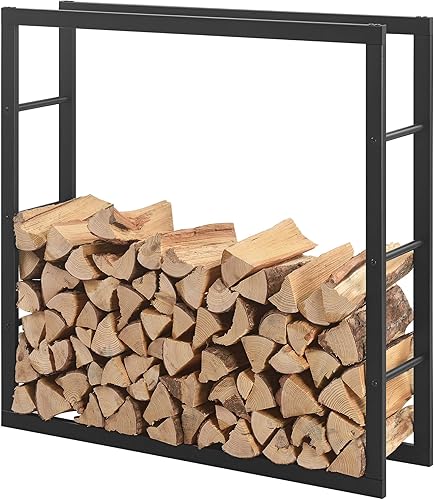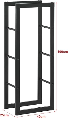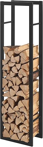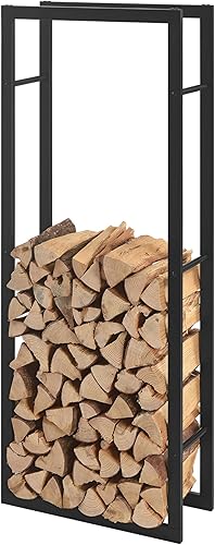 [en.casa] Kaminholzregal Täby Brennholzregal innen außen Metall 40 x 25 x 100 cm Holzunterstand Stapelhilfe für Feuerholz Holzlager Kaminholzständer Schwarz