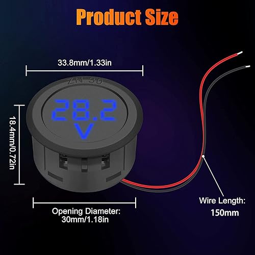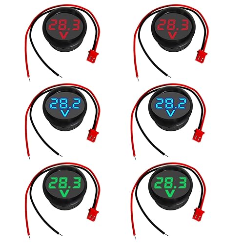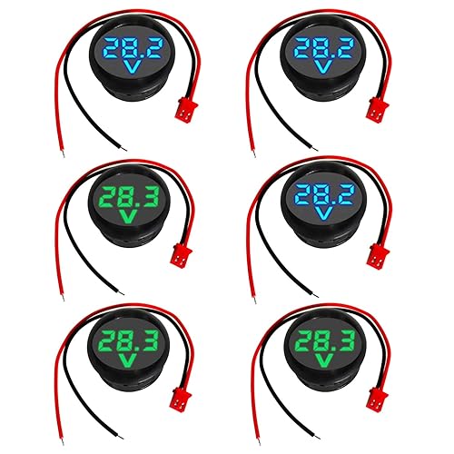 GTIWUNG 6 Stücke Digital Voltmeter DC 4-100V, Drähte Spannungsmesser 3-Digit LED Anzeige, Spannungsanzeige für Auto/Motorrad/LKW/Boot (Blau&Grün)