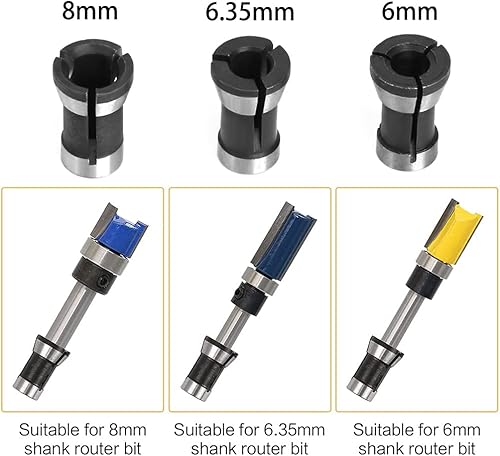 Saipor 6Stück Oberfräse Spannzangen Adapter Spannzange für Fräser Spannhülse Spannmutter Oberfräse Zubehör 6mm 1/4' 8mm Collet Adapter