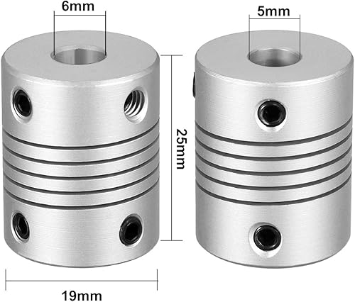 sourcing map 5mm zu 6mm Aluminiumlegierung Stab Flexibel Kupplung Motorsteckerverbindung L25xD19 Silber