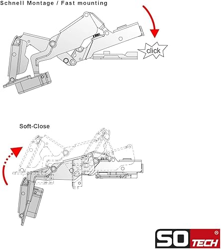 SOTECH Weitwinkelscharnier 165° Sensys 8657i Eckanschlag (vorliegend) Null-Einsprung, Soft-Close und Schließautomatik, Schnellmontage inkl. Montageplatte Höhe 0 mm mit Euroschrauben