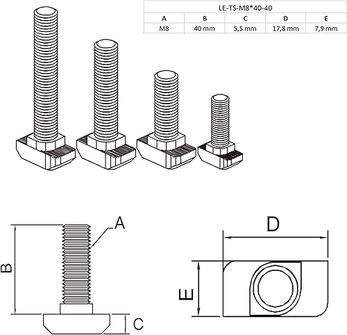 Hammerschraube T-Schraube M8 40mm Nut 8 für Aluprofil 40-er 10 Stück + Mutter