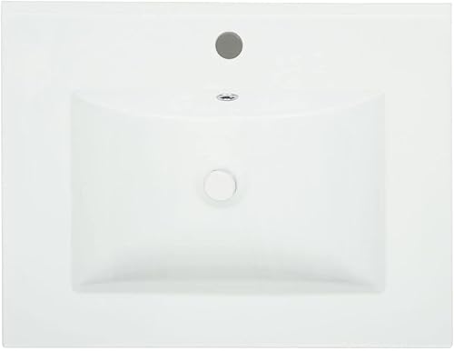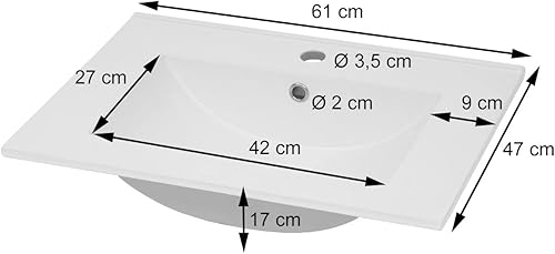 Mendler Waschbecken HWC-D16, Waschtisch Handwaschbecken Badezimmer Bad, Keramik eckig weiß - 61cm 18mm Kante
