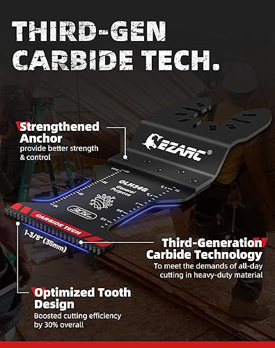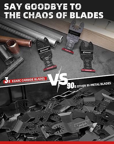 EZARC Hartmetall Multitool Sägeblätter, 3tlg Oszillierende Sägeblätter Carbide Allzweck, für Metall, Nägel, Holz, Gips, Trockenbau und PVC