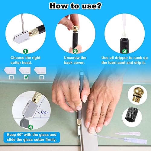 Glarks 4-teiliges robustes Glaslaufzangen-Set, Breaker Grozer-Zange mit Glasschneider und Bleistift-Stil, Ölzufuhr, Hartmetallspitze, Glasschneider für Mosaik/Fliesen/Spiegel/Buntglasschneiden