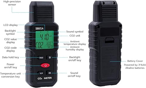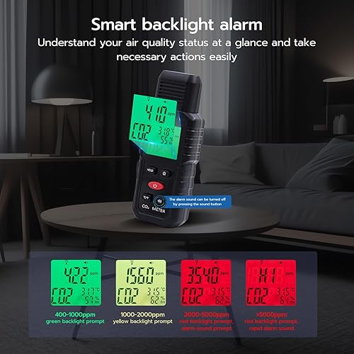 Mcbazel 3-in-1 Luftqualitätsmonitor, CO2-Detektor, Temperatur- und Feuchtigkeitsmesser, CO₂-Infrarot-Umweltmesser unterstützt Sprach-/Bildschirmlicht-Erinnerung für Schulen, Zuhause, Büros, Fitnessstu