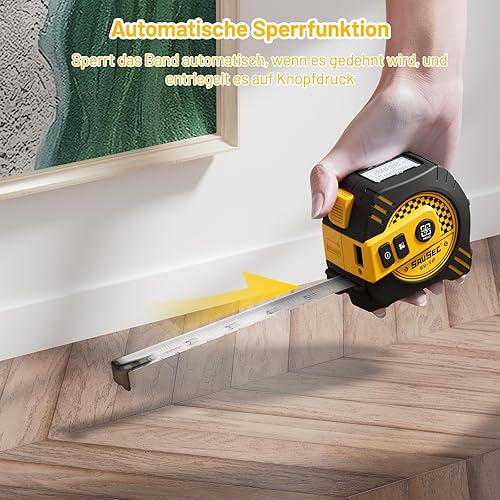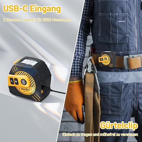 Laser Maßband, SAVSEC 2 in 1 Laser Entfernungsmesser Digitales Maßband mit Laser, Distanzmessgerät mit LCD Hintergrundbeleuchtung, ±2mm Pythagoras/Abstand/Fläche/Volumen Messung