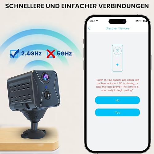 Mini Kamera,2K Kamera überwachung innen,Full HD Überwachungskamera,Mini Kamera Live Übertragung Handy APP,Lange Standby WiFi Kamera,mit Bewegungsmelder und Nachtsicht für Startseite Büro Sicherheit