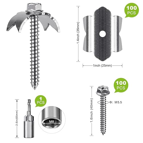 Dolibest Zaun Krampennägel, 100er Heftklammern Krampen zum Schrauben 4cm Drahtzaun Klammer Edelstahl Zaun Befestigung Zaunnägel für Holz Zautor Posten Reparatur von Stahl Krampf Draht mit M8 Adapter