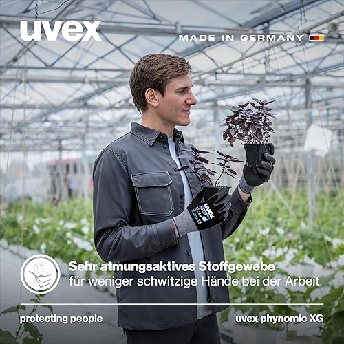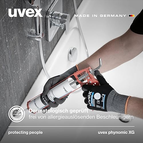Uvex phynomic XG, 5 Paar - premium Grip-Handschuh für feuchte & ölige Bereiche - flexibel, robust & atmungsaktiv - schwarz, grau - Größe 07/S