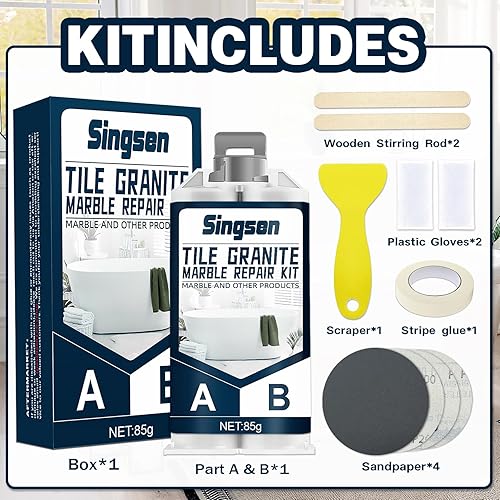Fliesen Granit Marmor Reparaturset. 85g starkes und wasserdichtes Porzellan Reparaturset, Fliesen Reparaturset für Marmor, Quarz, Porzellan, Fliesen, Harz, Acryl, Granit und mehr