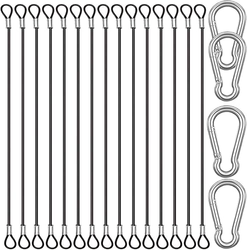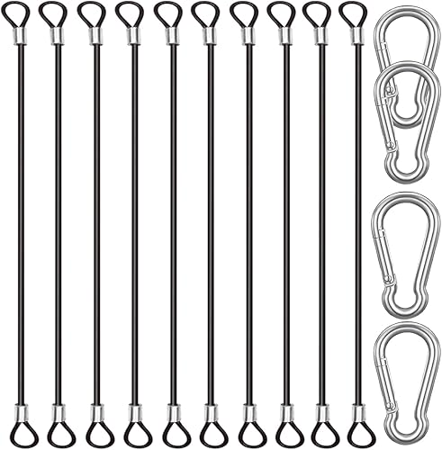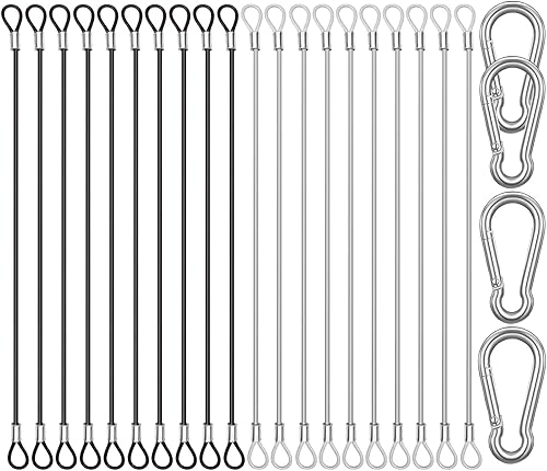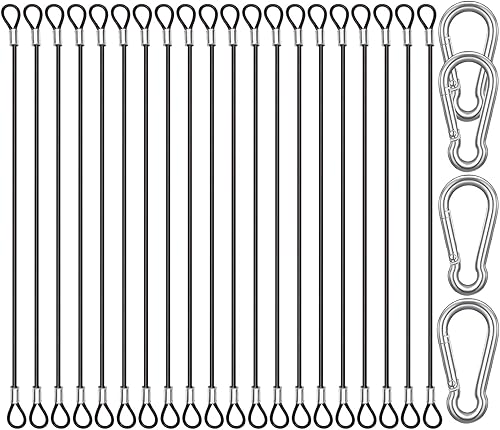 CKANDAY 20 Stück 15 cm Edelstahl Sicherheitsclips mit 4 Federkarabinern, Stahldrahtseil mit Schnallen, Vinylbeschichtung, kurze Sicherheitskette, Schnur ca