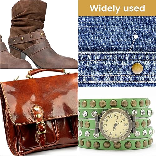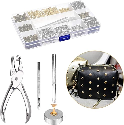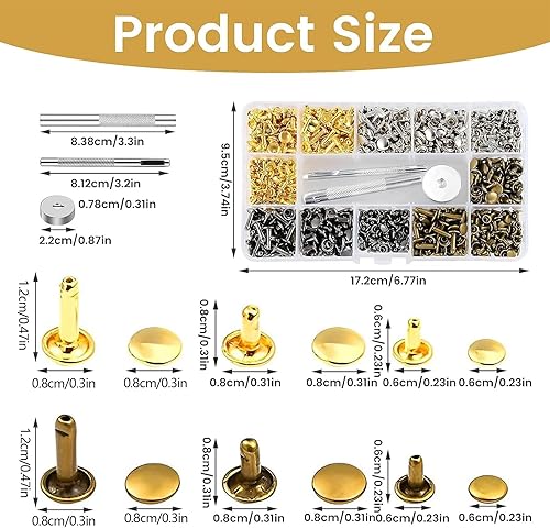 Leder Nieten Set, 360 Set Ledernieten Hohlnieten Metallnieten Doppelkappe Nieten 3 Größen Nieten mit 3 Stück Fixierung Werkzeug Lochzange für DIY Leder Handwerk Tasche Kleidung