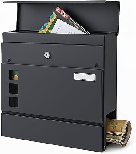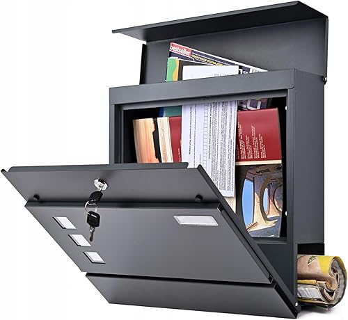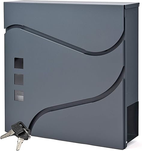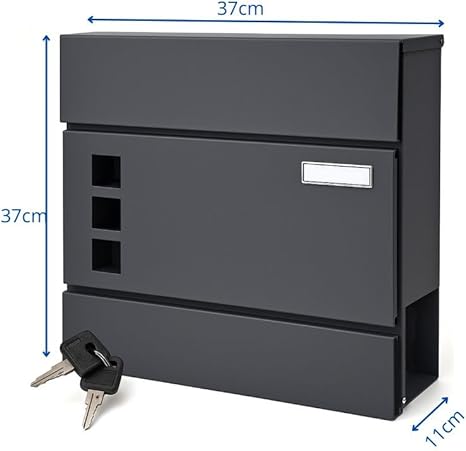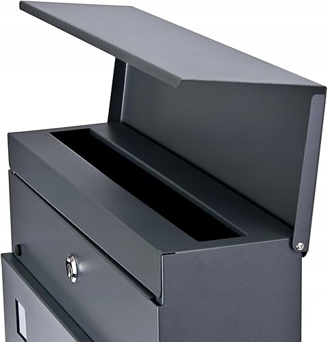 Verda Briefkasten mit Zeitungsfach, Postkasten Designer Wandbriefkasten, 2X Schlüssel, Zeitungsrolle Namensschild, modern, Anthrazit SN3676-1