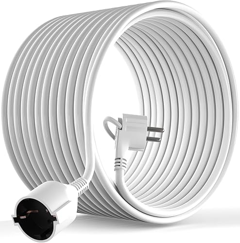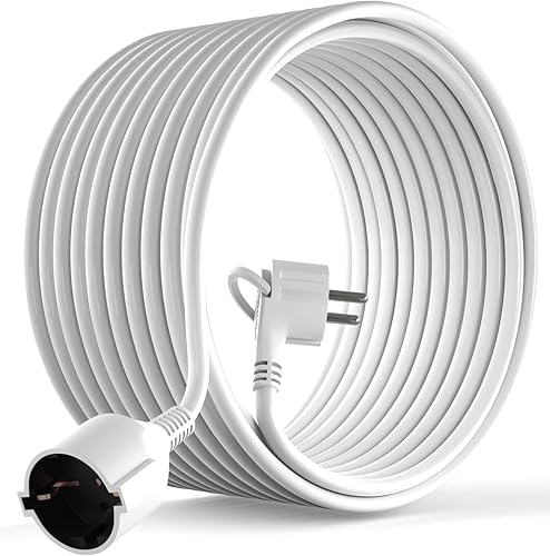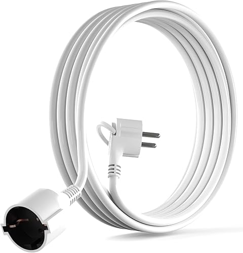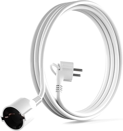 MutecPower 3 Meter Verlängerungskabel mit Flachstecker Qualitäts-Kunststoff Schuko Verlängerung mit Flachstecker Schutzkontakt 90° Winkelstecker & Schutzkontaktkupplung bis 250V 16A IP20-3m weiß