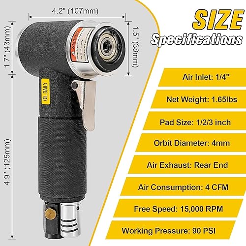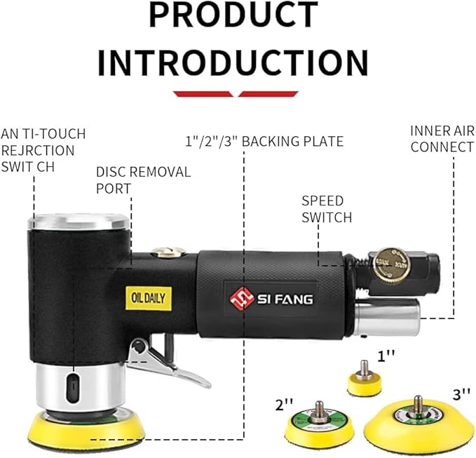 SIFANG Mini Poliermaschine Druckluft Exzenterschleifer 25/50/75mm Exzenter Schleifer druckluft werkzeug Mit 45tlg Mix Grit Schleifpapier, druckluftschleifer Für Auto Polieren