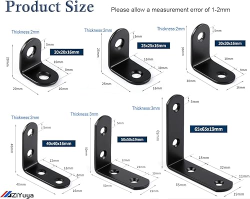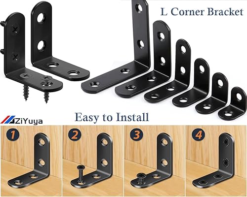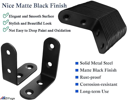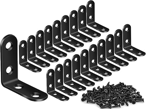 ZiYuya Winkelverbinder, Metallwinkel 90 grad Edelstahl Winkel Klammern L-Form Rechtwinkliges Edelstahl Ecke Klammer Möbel für Bracket Möbel Tabelle schwarz, 20 Stück, 25 mm x 25 mm