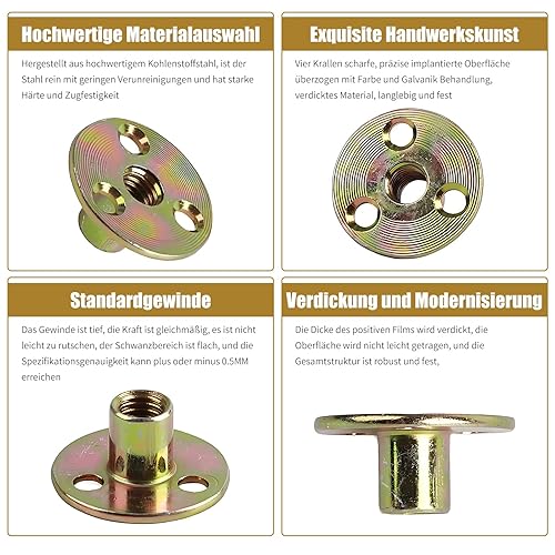 10er-Satz M10-Muttern, T-Flansch-Muttern, Einschraubmuttern, Rundfuß, Einpressmuttern zur Befestigung, Verbindungsmöbel (M10)