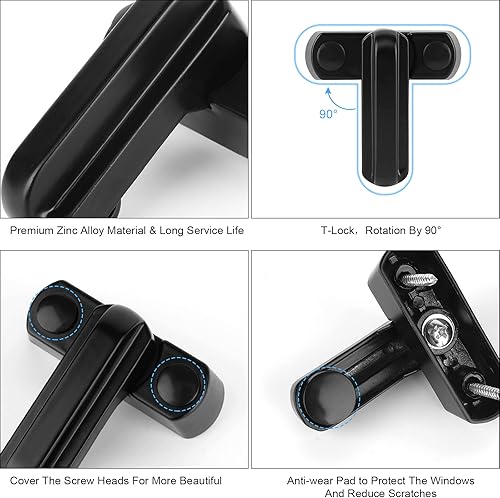 4 Stück Fenstersicherung, Aluminiumlegierung Safe Fensterschloss für Tür Heimsicherheit Kinderschutz, Jammer Fenster Extra Schloss für UPVC/PVC Türen Fenster- Schwarz