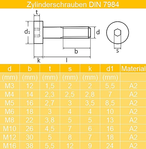 Techtanium® Zylinderschrauben M8 x 20 mm mit Innensechskant [niedrige Form] aus Edelstahl A2 (10 Stück) | Zylinderkopfschrauben | Gewindeschrauben | DIN 7984