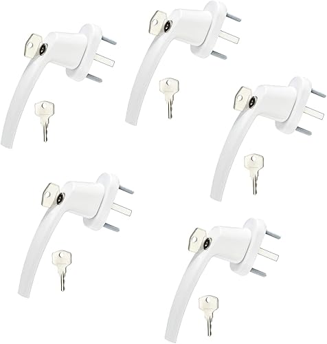 SOTECH 10 x Fenstergriffe CALISTO (151 x 28,5 x 62 mm) weiß mit 45° Raster Aluminium Fenster-Griffe verriegelbar über Druckknopf
