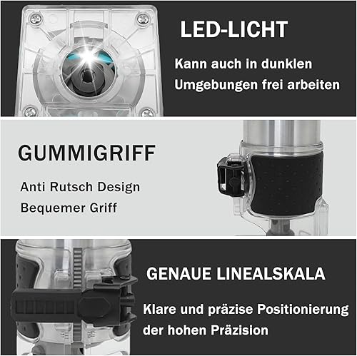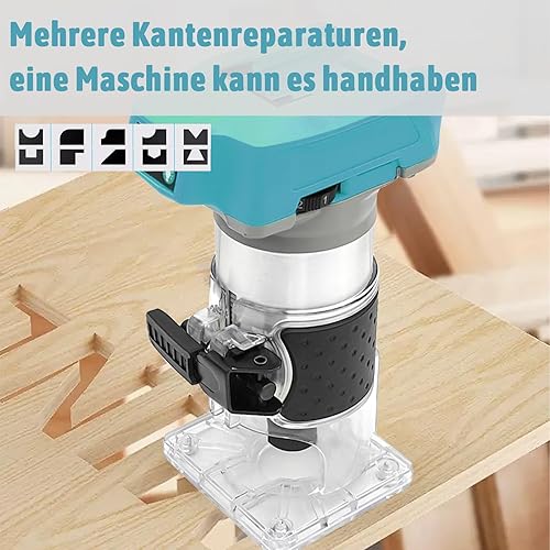 Akku Kantenfräse, Kompatibel mit Makita, 1/4 Zoll mit Transparente Basis 18V Akku-Oberfräse Geeignet für Prozessschnitzen, Lichtbogenschneide(Ohne Akku)