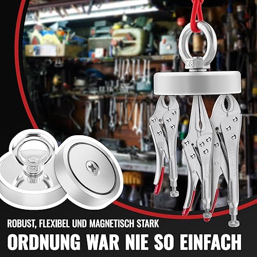 POPPSTAR 10 Stück Ösenmagnete (Haftkraft 36 kg, Durchmesser 32mm) Neodym Magnete extra stark mit Öse
