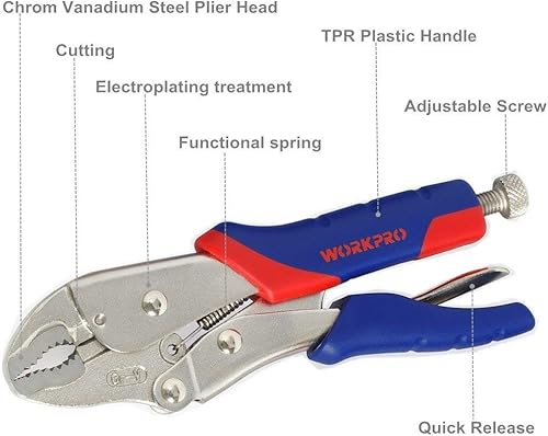 WORKPRO Gripzangen-Set mit Handgriff, selbsthemmend,255mm 180mm 165mm 3-tlg.