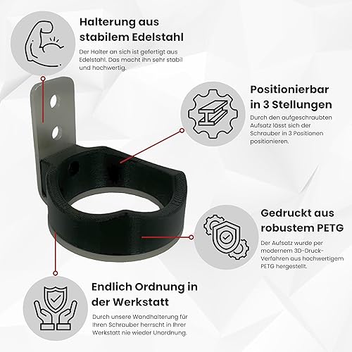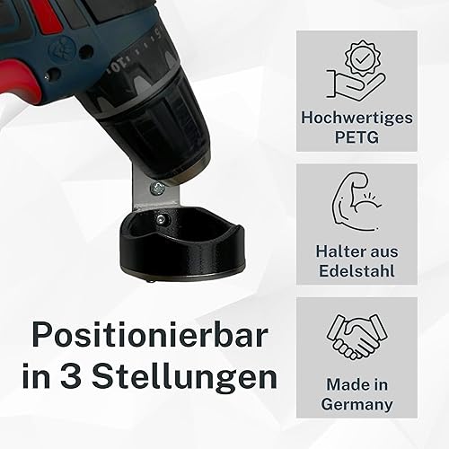LADSPRINT® Edelstahl Wandhalterung passend für Bosch GSR12V-15 und viele andere Modelle | Robust und Stabil | Perfekte Passform | Made in Germany | Sichere und platzsparende Aufbewahrungslösung