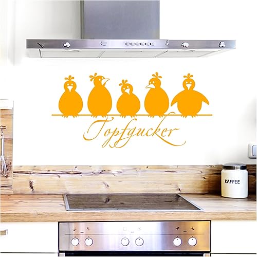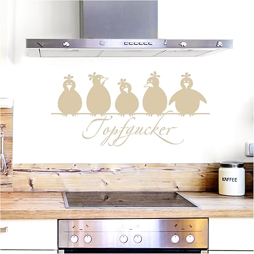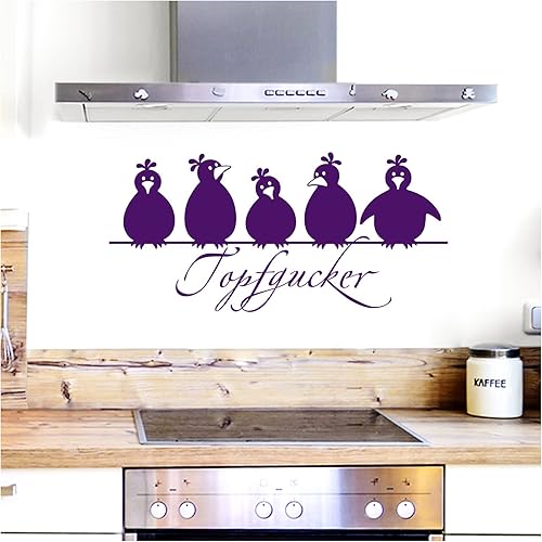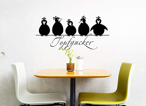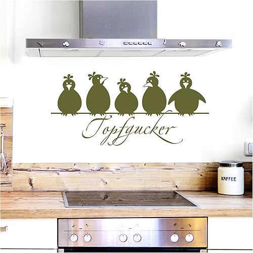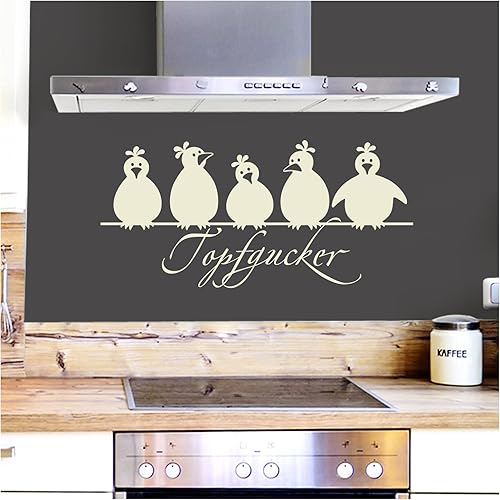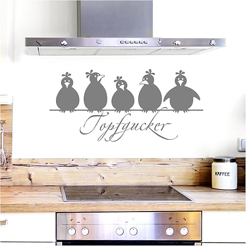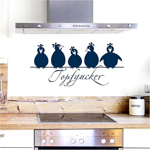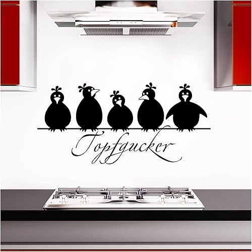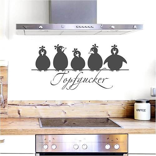 Grandora Wandtattoo Topfgucker 5 Vögel I schwarz 58 x 27 cm I Küche Spruch Zitat Aufkleber selbstklebend Wandaufkleber Wandsticker W862